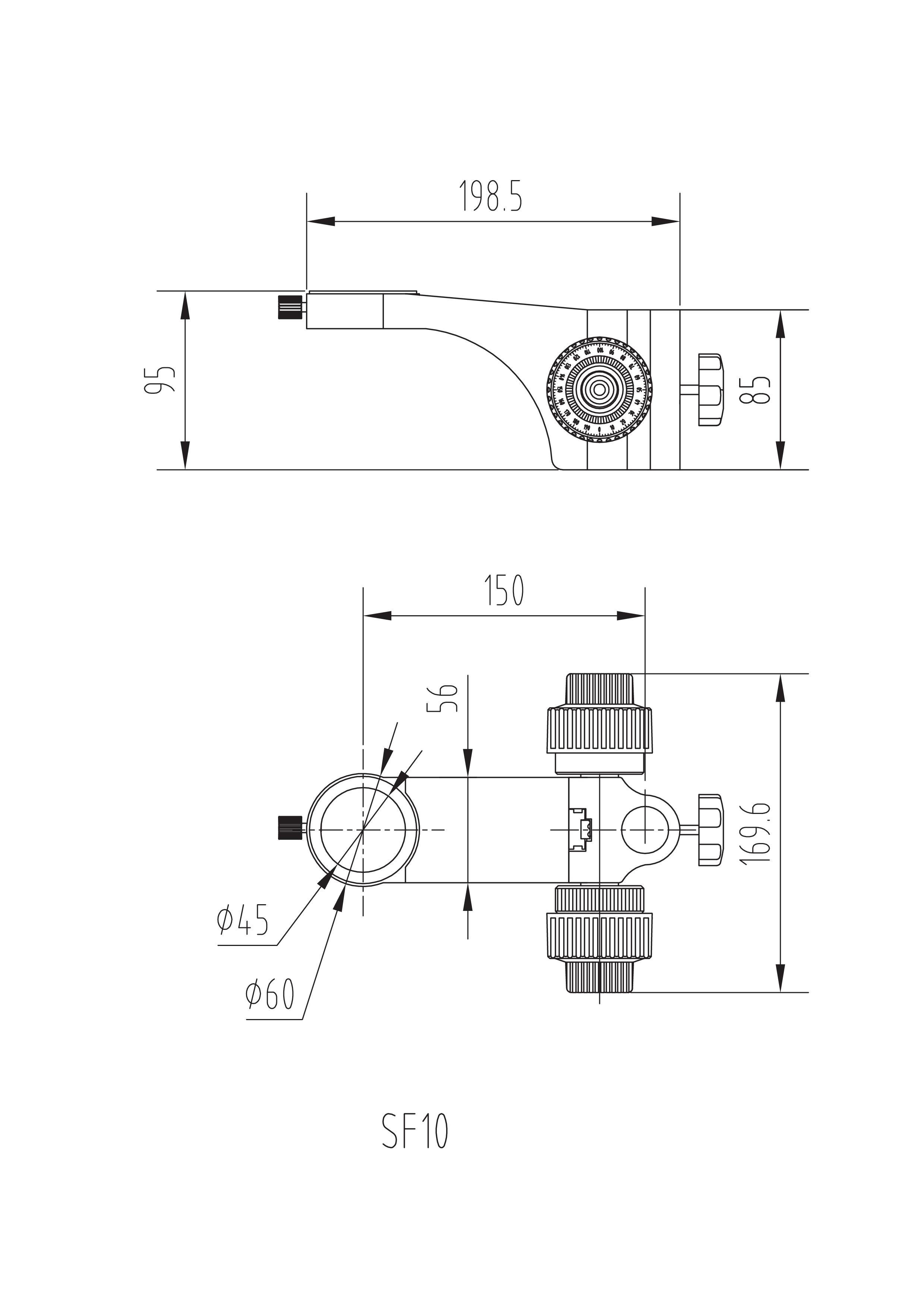 型號名稱: SF11升降組 說 明: ● 調焦手輪松緊可調整,確保長期使用可靠 ● 立柱安裝孔直徑Φ25mm,鏡體安裝孔直徑Φ45mm, 兩孔中心距140mm