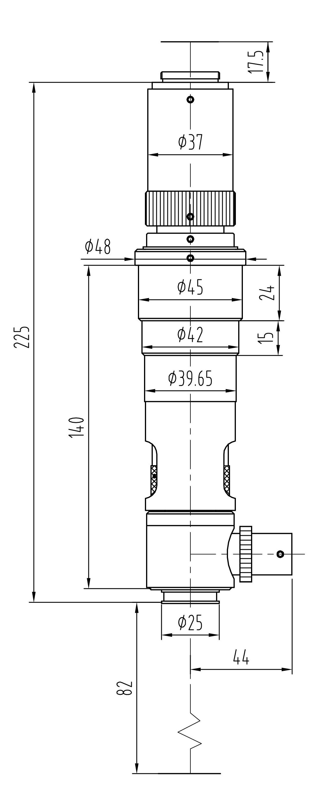 安裝尺寸:Φ45mm 最大兼容相機(jī):1/2" CCD螺紋接口:1英吋32扣