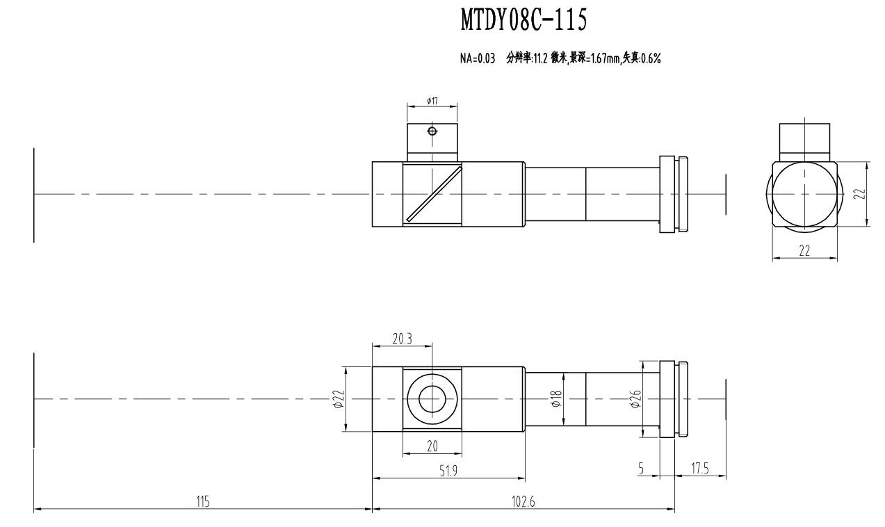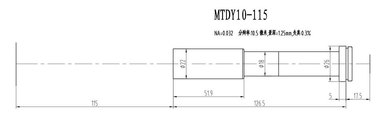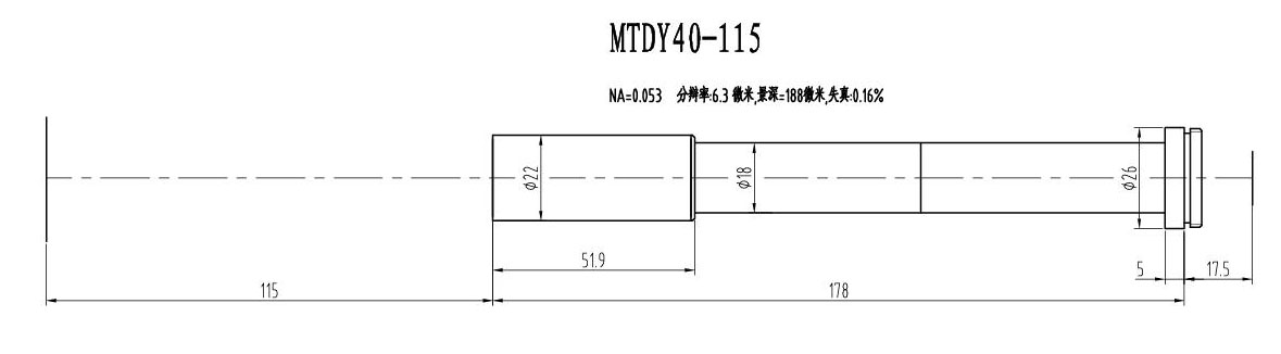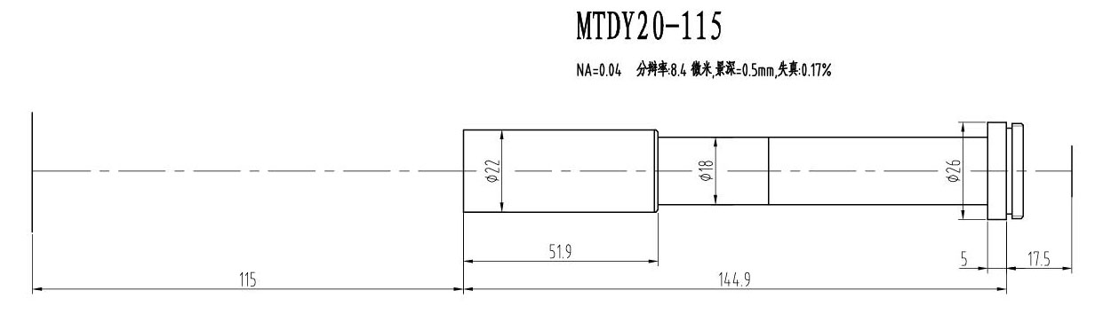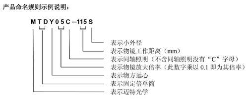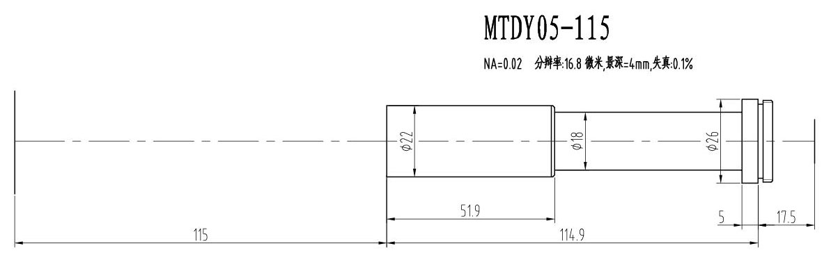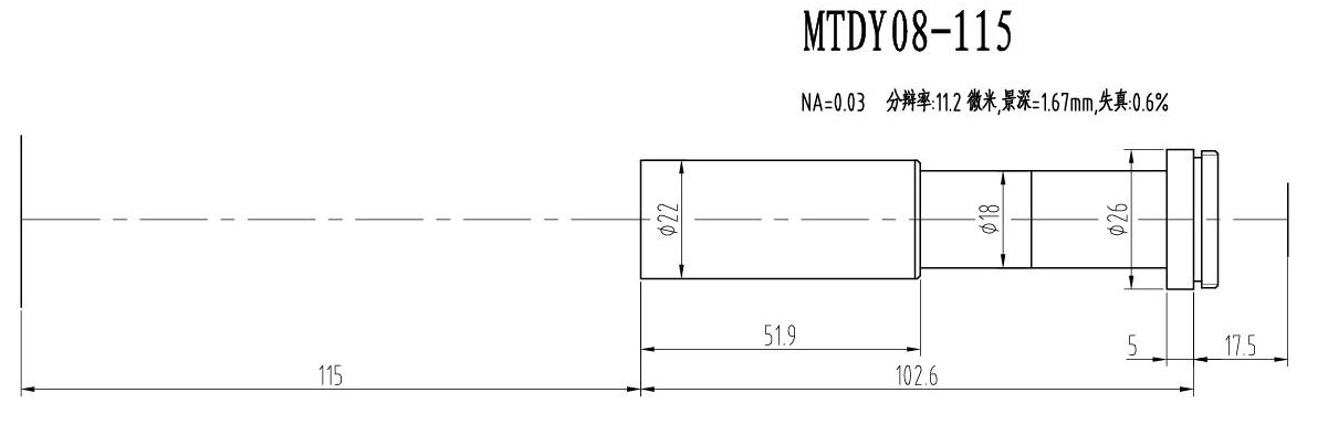 2. MTDY物方遠心物鏡型號規格匯總(工作距離為115mm):