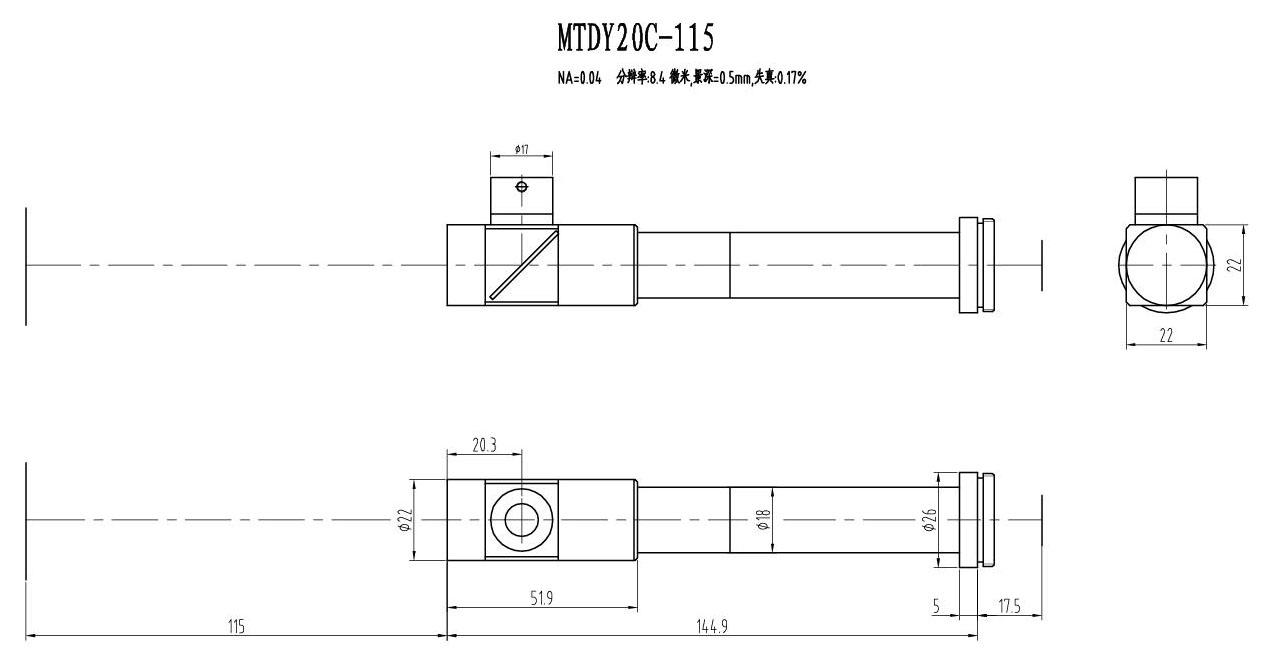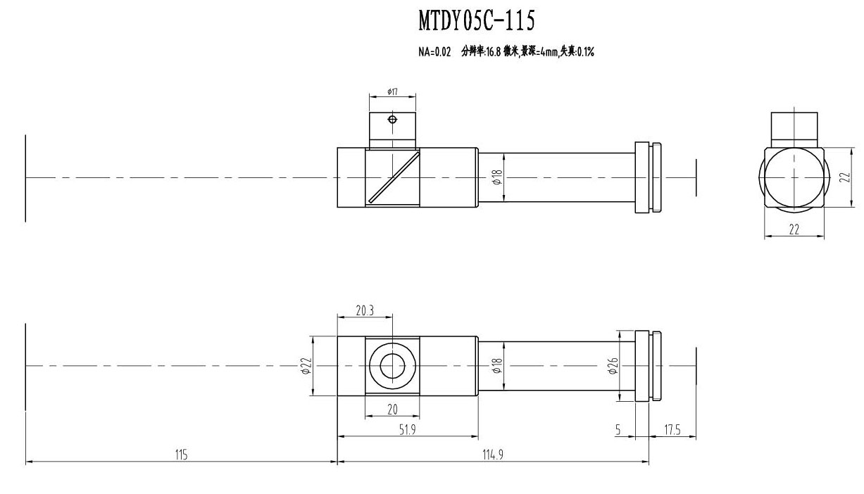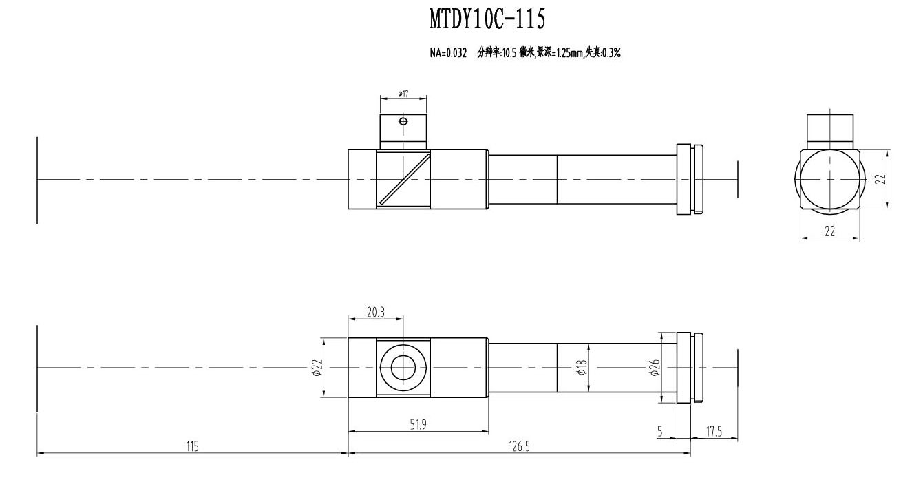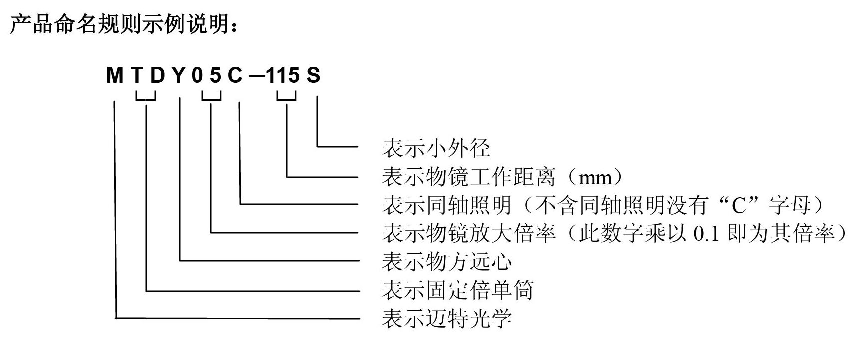 2. MTDY物方遠心物鏡型號規格匯總(工作距離為115mm):