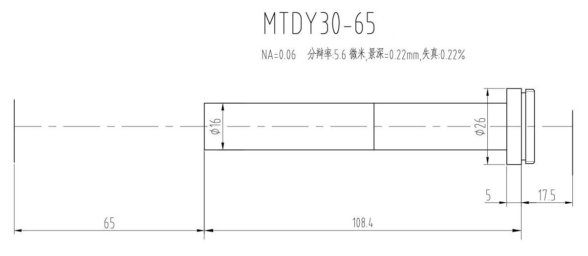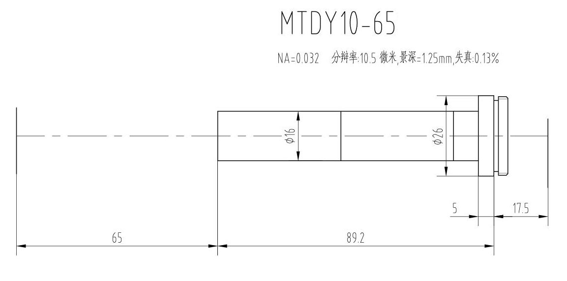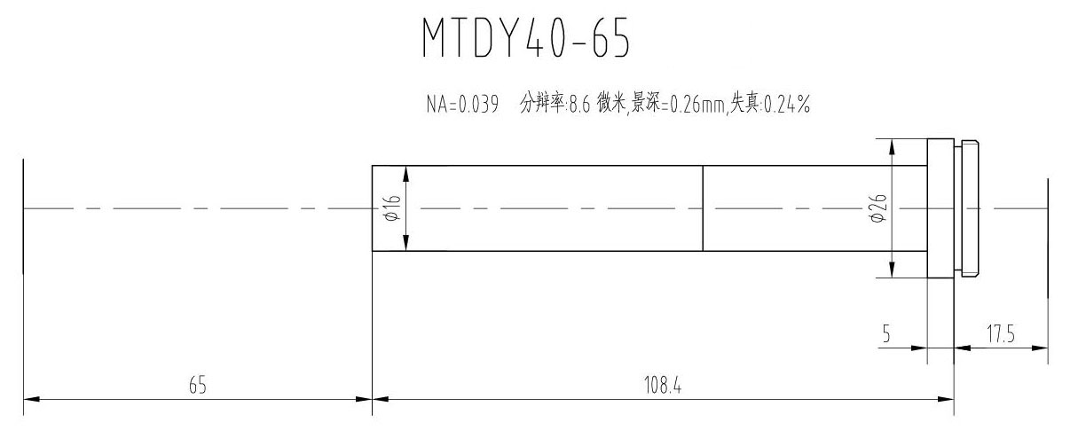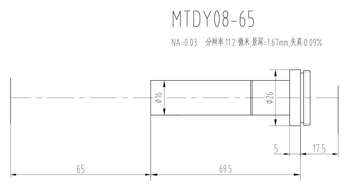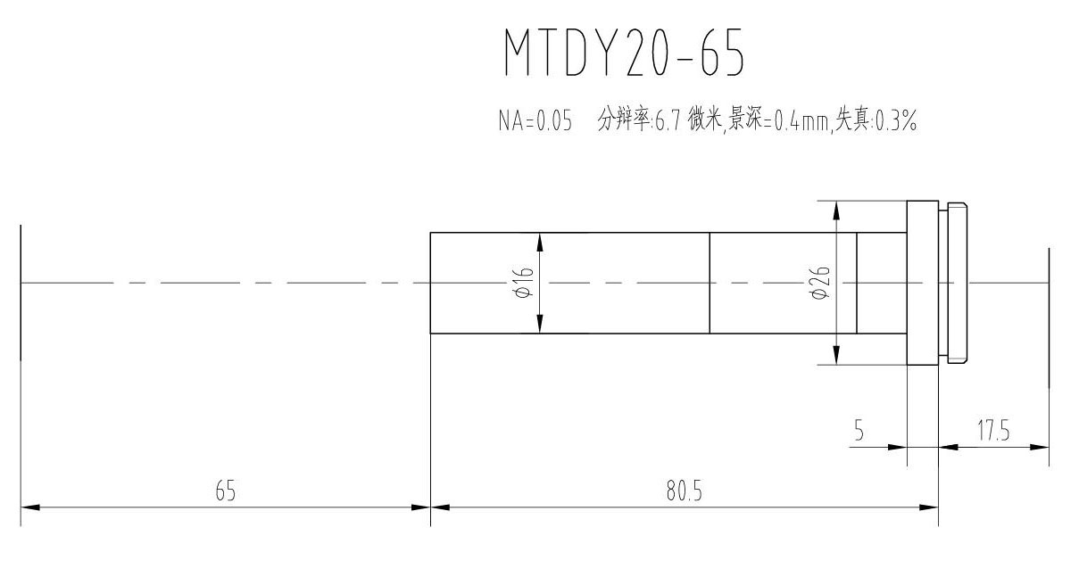 1. MTDY物方遠心物鏡型號規格匯總(工作距離為65mm):