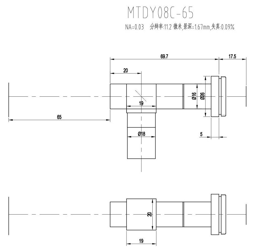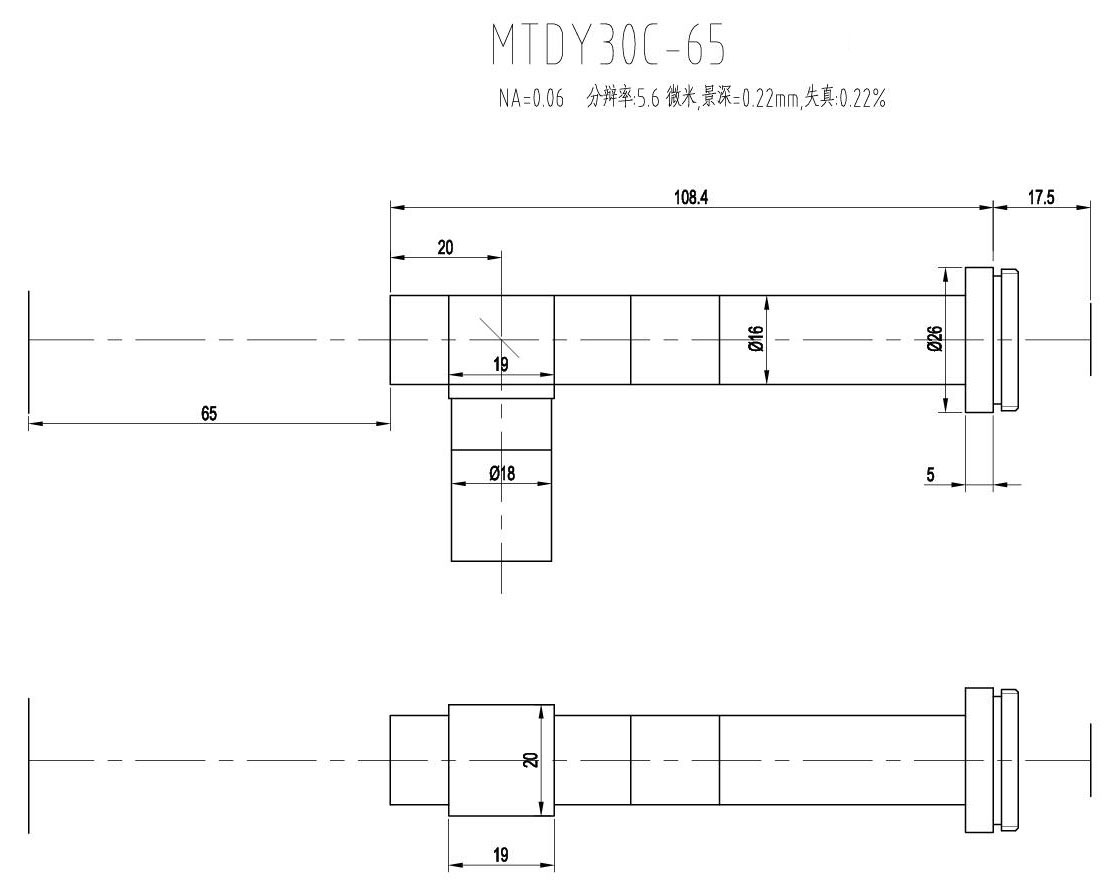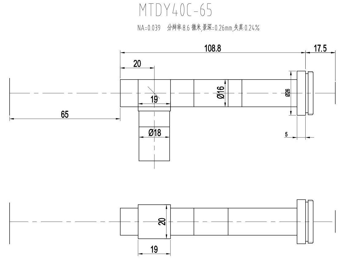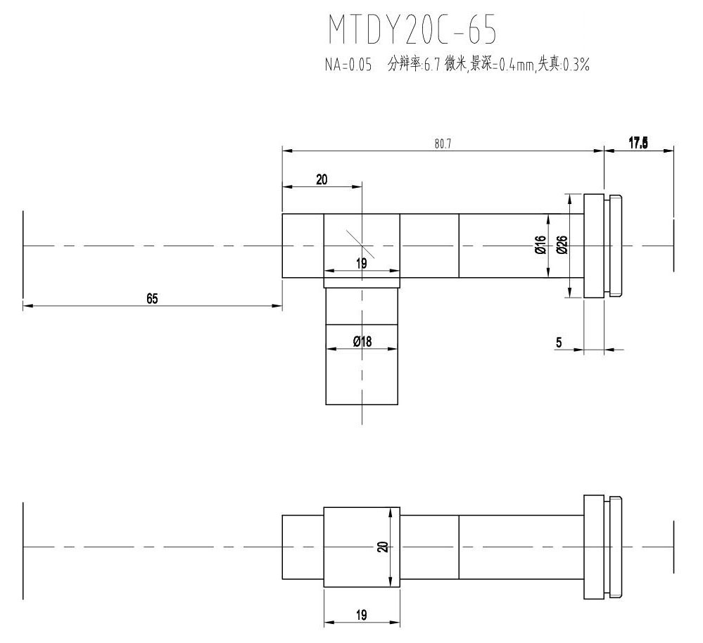 1. MTDY物方遠心物鏡型號規格匯總(工作距離為65mm):